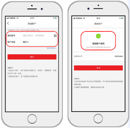 第三步:點(diǎn)擊添加賬戶—輸入本人名下他行銀行卡信息—進(jìn)行人臉識(shí)別通過后綁定成功。