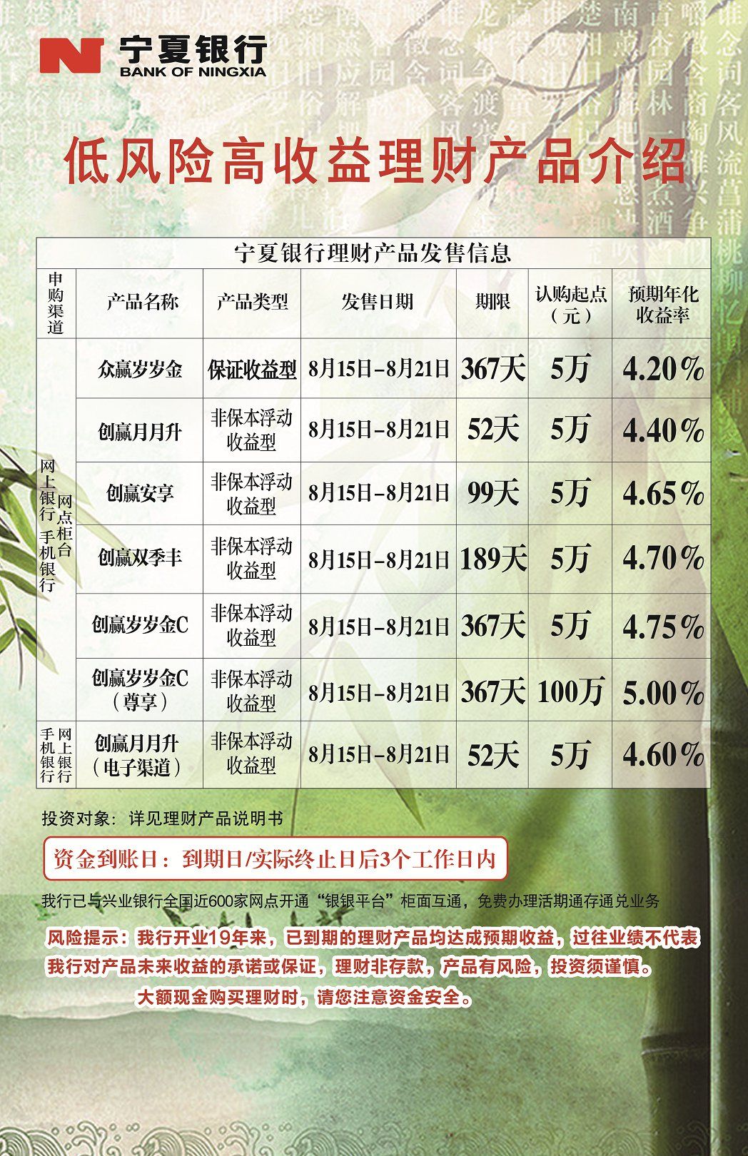 理財(cái)產(chǎn)品8.15-8.21